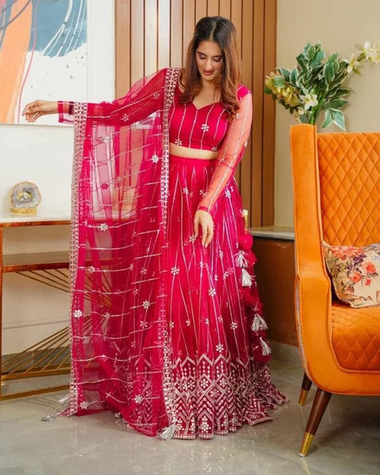 PARISHA PINK NET LEHENGA CHOLI SET