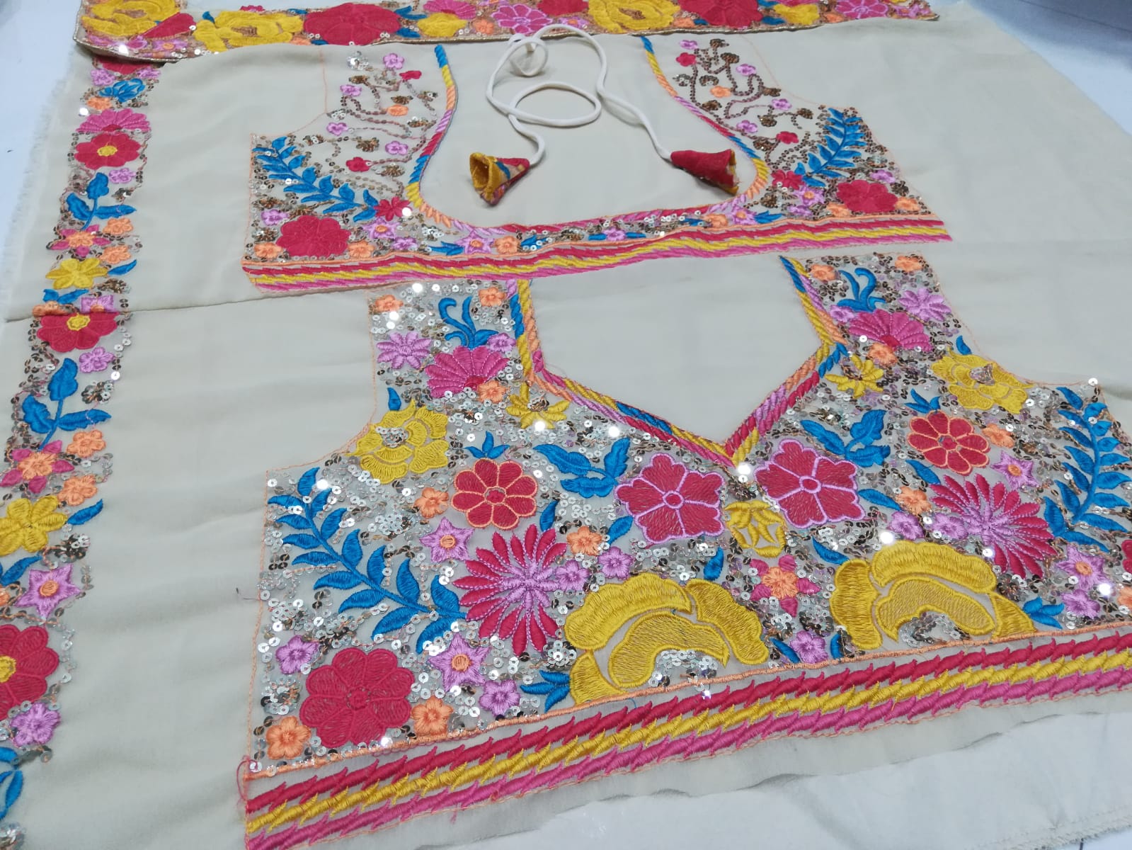 🌼PRINT:- MULTI COLOR THREAD WITH 5MM SEQUENCE EMBROIDERY BORDER WORK
